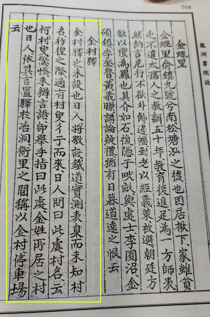 - 한자: 也日人依其言置驛於村治洞里之間稱以金村停車場 云