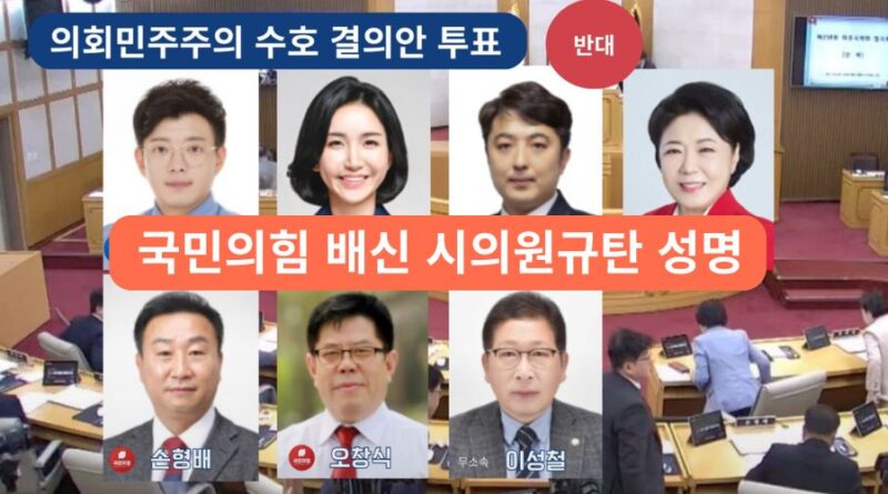 시민연합신문 고기석 발행인은 2025.9.16일 속보를 통하여 ‘의회민주주의 수호결의안’을 반대한 국힘 시의원이 발표한 성명서에 대하여 강하게 비판했다 -파주위키- 국민의힘 파주시 청년위원회가