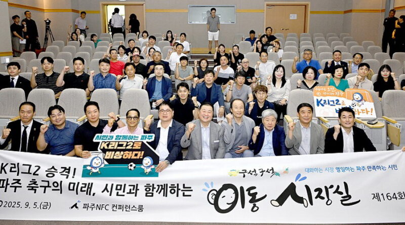 –축구협회 등 관련 단체와 이동시장실 개최- 파주시는 5일 파주 축구국가대표훈련원에서 파주시민축구단의 K리그2 진출에 대한 시민 의견을 듣기 위한 이동시장실을 개최했다.