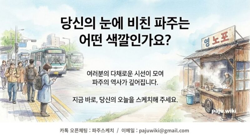 파주스케치 함께 그려가는 파주의 오늘, [파주스케치] 2025-11-29 pajuwiki 당신의 눈에 비친 파주는 어떤 색깔인가요? [파주스케치]는 시민 여러분의 다채로운 시선으로 파주의 오늘을 색칠하는 공간입니다. 바쁜 출근길의 활기찬 아침, 고즈넉한 자세히 보기